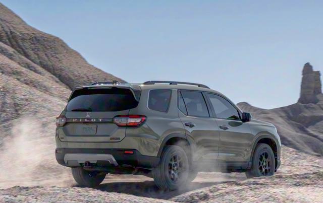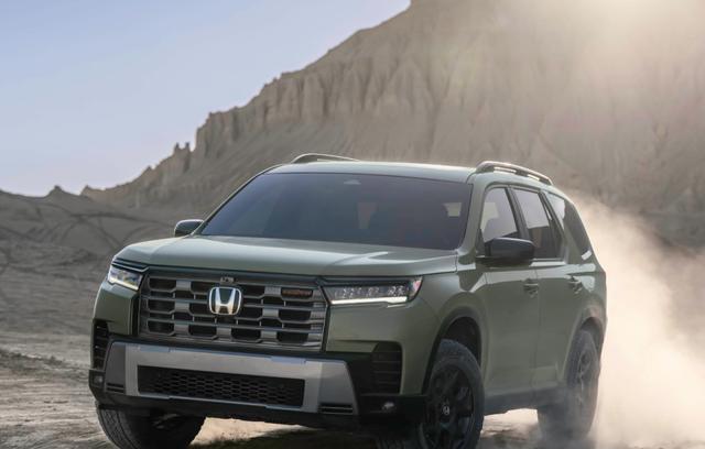 先说这“面子”,2026款Pilot的改动堪称“微整形”。方形的下包围和雾灯区域取代了老款的圆润,像给这位硬汉修整了一下胡须,更显粗犷精神。整体轮廓依然庞大、雄壮,是一种毫不妥协的实用主义美学,浑身散发着“我能装又能跑”的踏实感。与国内常见的,线条流畅、追求精致感的城市SUV(比如理想L8)相比,Pilot更像一位穿着工装裤的探险队长,风格迥异。和它最直接的对手丰田汉兰达比,Pilot在设计上也更偏向纯正的越野范儿,少了一丝都市的圆滑。